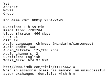 Release Name : End.Game.2021.BDRip.x264-YAMG