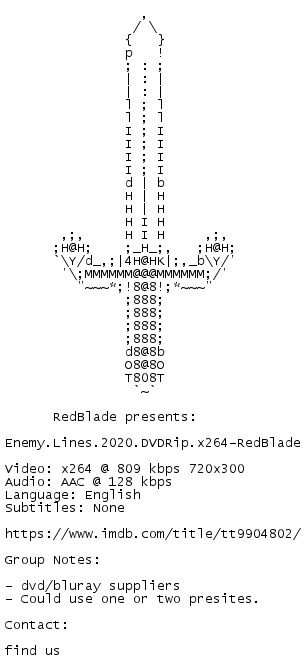 Release Name : Enemy.Lines.2020.DVDRip.x264-RedBlade