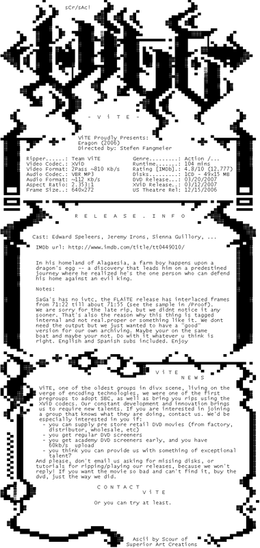 Release Name : Eragon.2006.INTERNAL.READNFO.DVDRip.XviD-ViTE