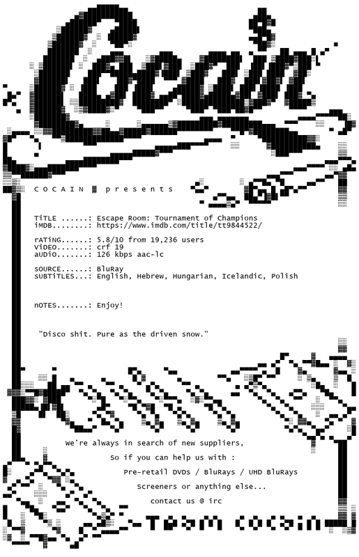 Release Name : Escape.Room.Tournament.Of.Champions.2021.EXTENDED.BDRip.x264-COCAIN