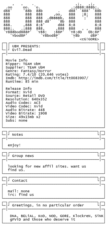 Release Name : Evil.Dead.1981.INTERNAL.DVDRIP.XVID-UbM