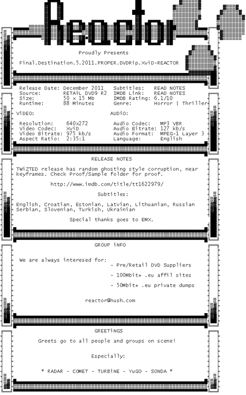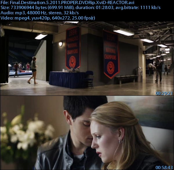 Release Name : Final.Destination.5.2011.PROPER.DVDRip.XviD-REACTOR