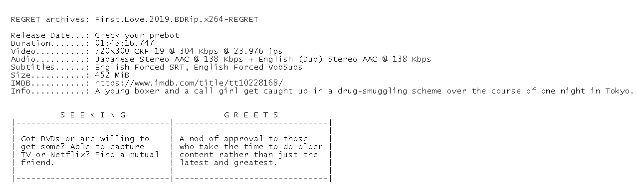 Release Name : First.Love.2019.BDRip.x264-REGRET