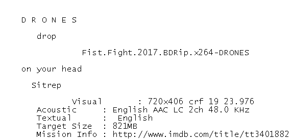 Release Name : Fist.Fight.2017.BDRip.x264-DRONES