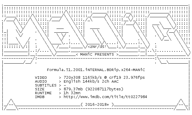 Release Name : Formula.51.2001.iNTERNAL.BDRip.x264-MANiC