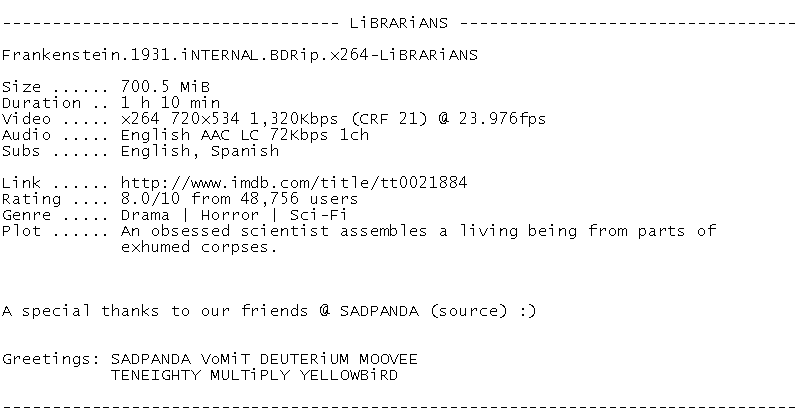 Release Name : Frankenstein.1931.iNTERNAL.BDRip.x264-LiBRARiANS