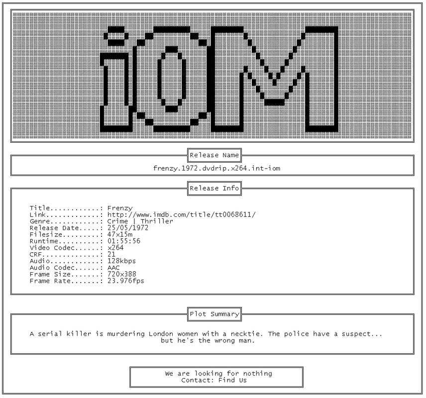 Release Name : Frenzy.1972.DVDRip.x264.iNT-iOM