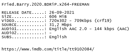 Release Name : Fried.Barry.2020.BDRiP.x264-FREEMAN