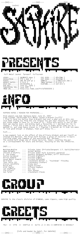 Release Name : Full.Metal.Jacket.1987.PROPER.DVDRip.DivX-SAPHiRE