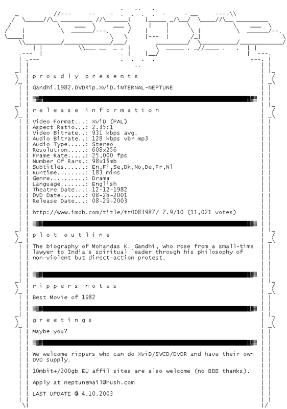 Release Name : Gandhi.1982.DVDRip.XviD.iNTERNAL-NEPTUNE
