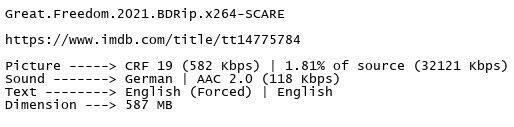 Release Name : Great.Freedom.2021.BDRip.x264-SCARE