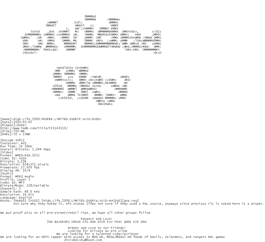 Release Name : High.Life.2009.PROPER.LiMiTED.DVDRiP.XviD-DVSKY