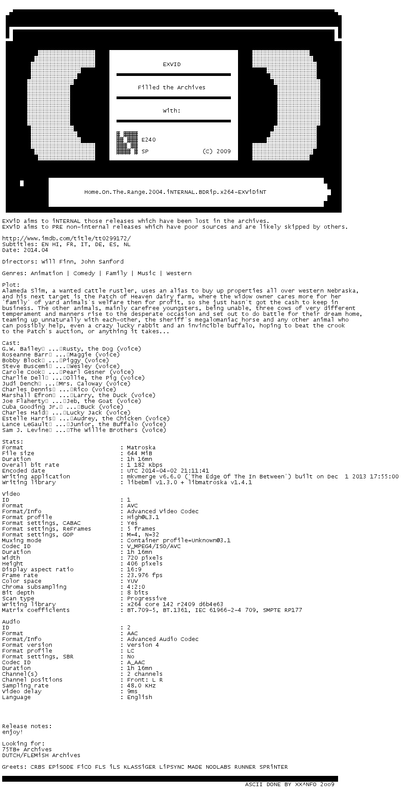 Release Name : Home.On.The.Range.2004.iNTERNAL.BDRip.x264-EXViDiNT