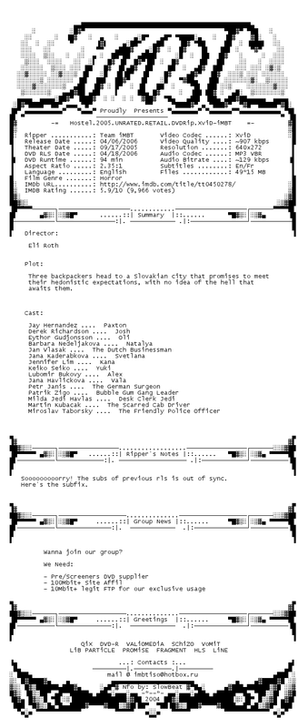 Release Name : Hostel.2005.UNRATED.RETAIL.SUBFIX.DVDRip.XviD-iMBT