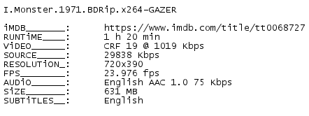 Release Name : I.Monster.1971.BDRip.x264-GAZER