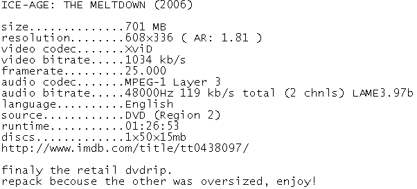 Release Name : Ice.Age.The.Meltdown.2006.REPACK.DVDRip.XviD-NoGrp