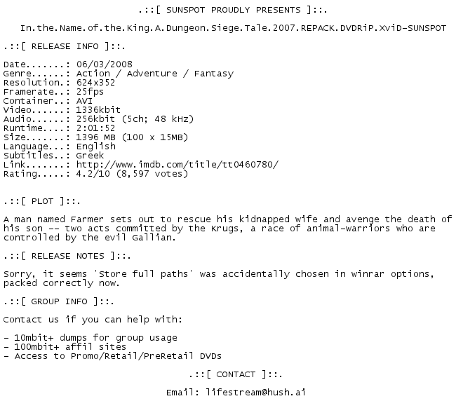 Release Name : In.the.Name.of.the.King.A.Dungeon.Siege.Tale.2007.REPACK.DVDRiP.XviD-SUNSPOT
