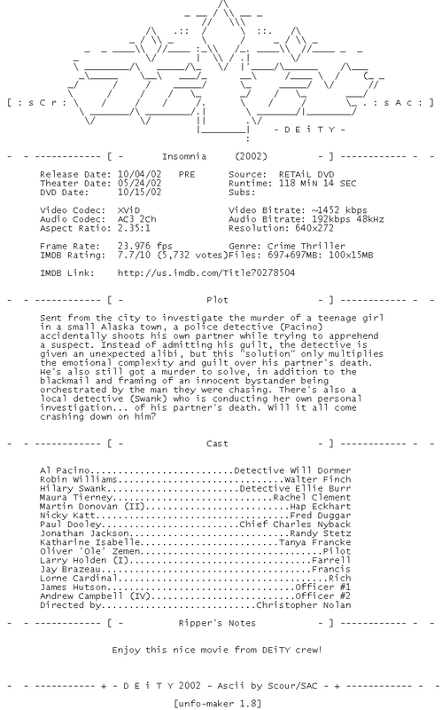 Release Name : Insomnia.2002.DVDRiP.XviD-DEiTY