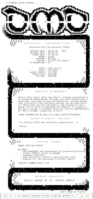 Release Name : Interview.With.The.Assassin.2002.LIMITED.DVDrip.DivX-DiAMOND