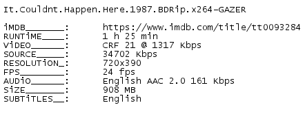 Release Name : It.Couldnt.Happen.Here.1987.BDRip.x264-GAZER