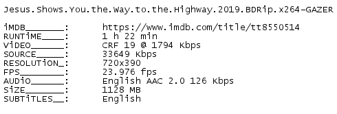 Release Name : Jesus.Shows.You.the.Way.to.the.Highway.2019.BDRip.x264-GAZER