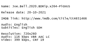 Release Name : Joe.Bell.2020.BDRip.x264-PiGNUS