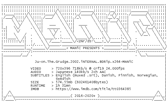 Release Name : Ju-on.The.Grudge.2002.iNTERNAL.BDRip.x264-MANiC