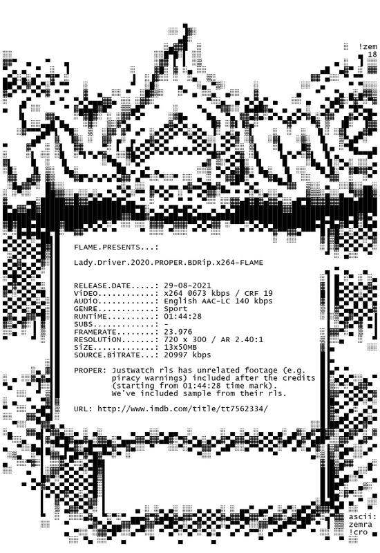 Release Name : Lady.Driver.2020.PROPER.BDRip.x264-FLAME
