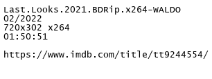 https://uptobox.com/ncd2oxuzgi8l/Last.Looks.2021.BDRip.x264-WALDO.rar