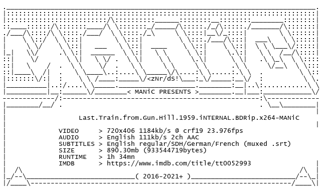 Release Name : Last.Train.from.Gun.Hill.1959.iNTERNAL.BDRip.x264-MANiC