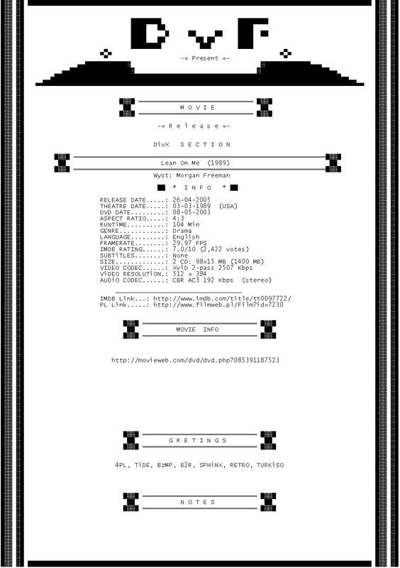 Release Name : Lean.On.Me.1989.iNTERNAL.AC3.DVDRiP.XViD-DvF