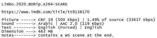 Release Name : Limbo.2020.BDRip.x264-SCARE