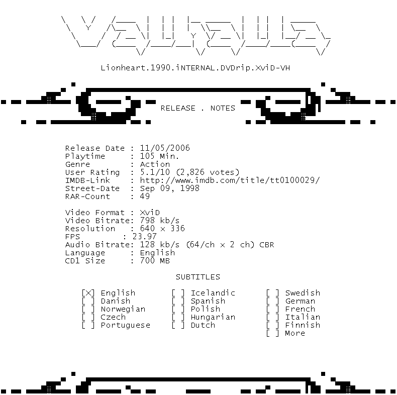 Release Name : Lionheart.1990.iNTERNAL.DVDrip.XviD-VH