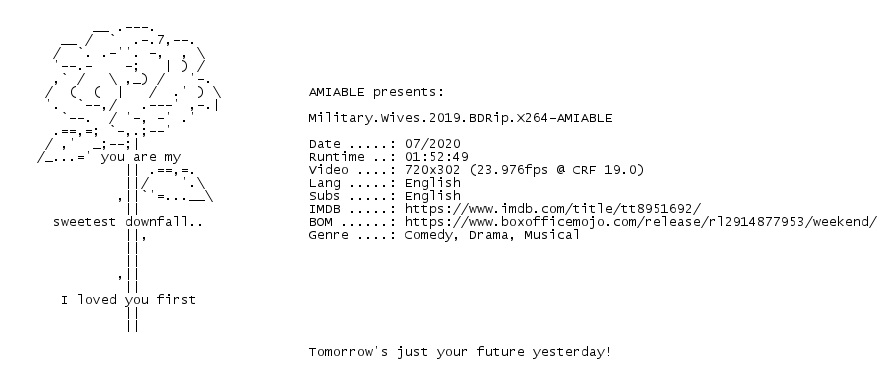 Release Name : Military.Wives.2019.BDRip.X264-AMIABLE