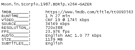 Release Name : Moon.in.Scorpio.1987.BDRip.x264-GAZER