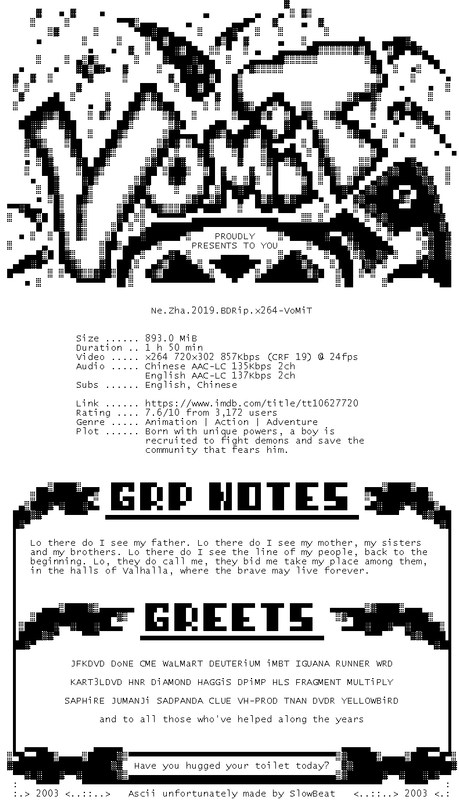 Release Name : Ne.Zha.2019.BDRip.x264-VoMiT