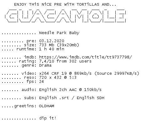 Release Name : Needle.Park.Baby.2020.BDRiP.x264-GUACAMOLE