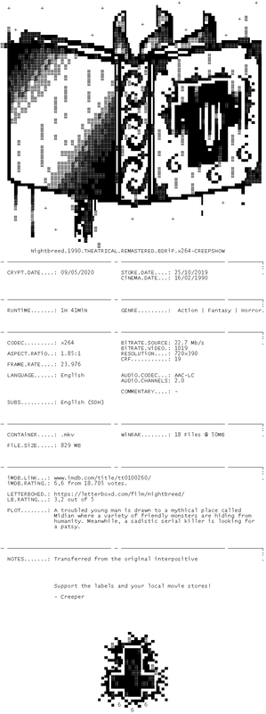 Release Name : Nightbreed.1990.THEATRICAL.REMASTERED.BDRiP.x264-CREEPSHOW