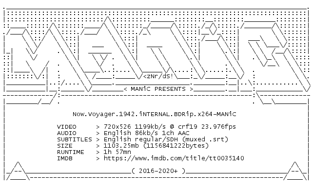 Release Name : Now.Voyager.1942.iNTERNAL.BDRip.x264-MANiC