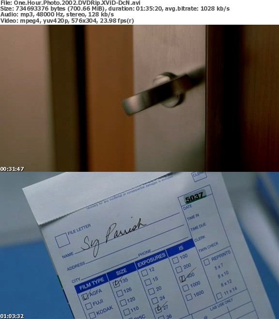Release Name : One.Hour.Photo.2002.DVDRip.XViD-DcN