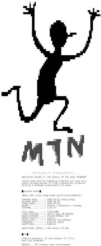 Release Name : Operation.Condor.2.The.Armour.Of.The.Gods.1987.iNTERNAL.DVDRip.XviD-MTN