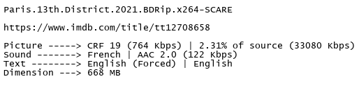 Release Name : Paris.13th.District.2021.BDRip.x264-SCARE