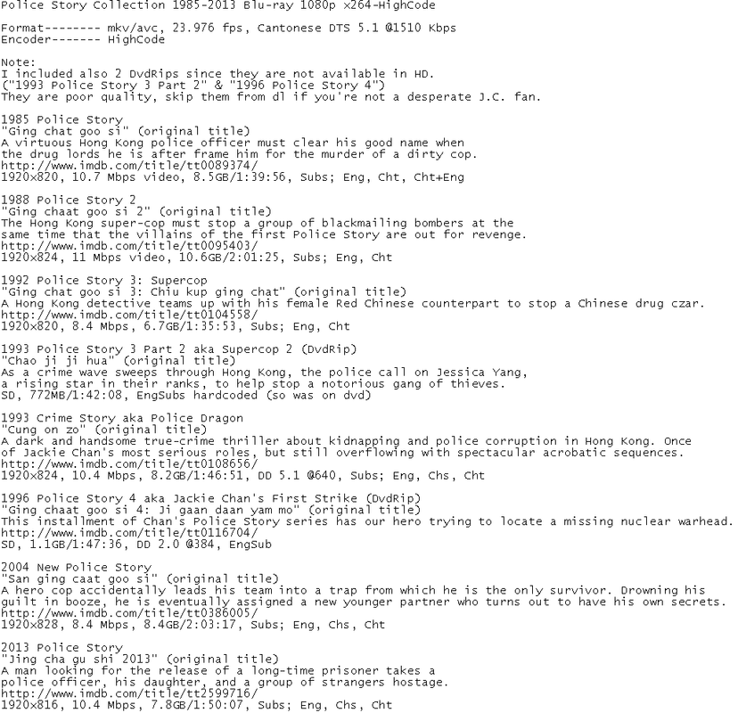 Release Name : Police.Story.2.1988.EXTRA.BDRip.x264-HighCode