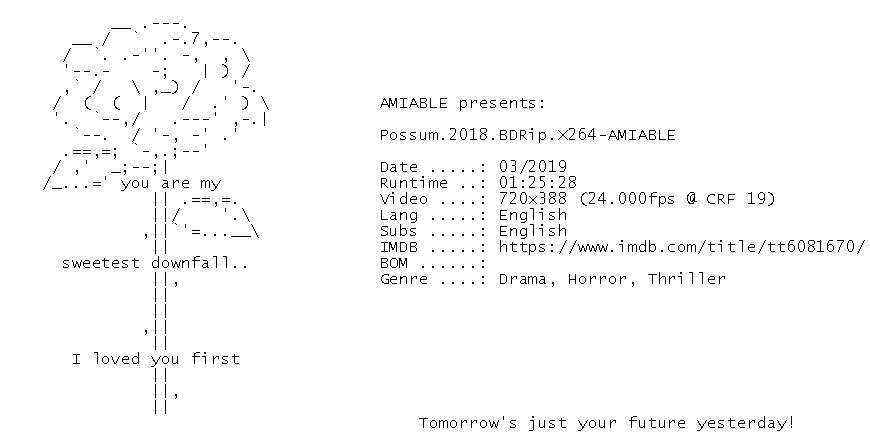 Release Name : Possum.2018.BDRip.X264-AMIABLE