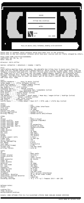 Release Name : Puss.In.Boots.2011.iNTERNAL.DVDRip.XviD-EXViDiNT