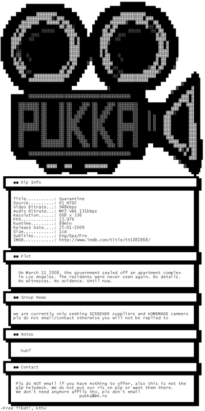 Release Name : Quarantine.2008.DVDRip.XViD-PUKKA