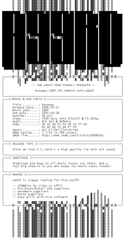 Release Name : Runaway.1984.iNT.DVDRiP.XViD-aGGr0