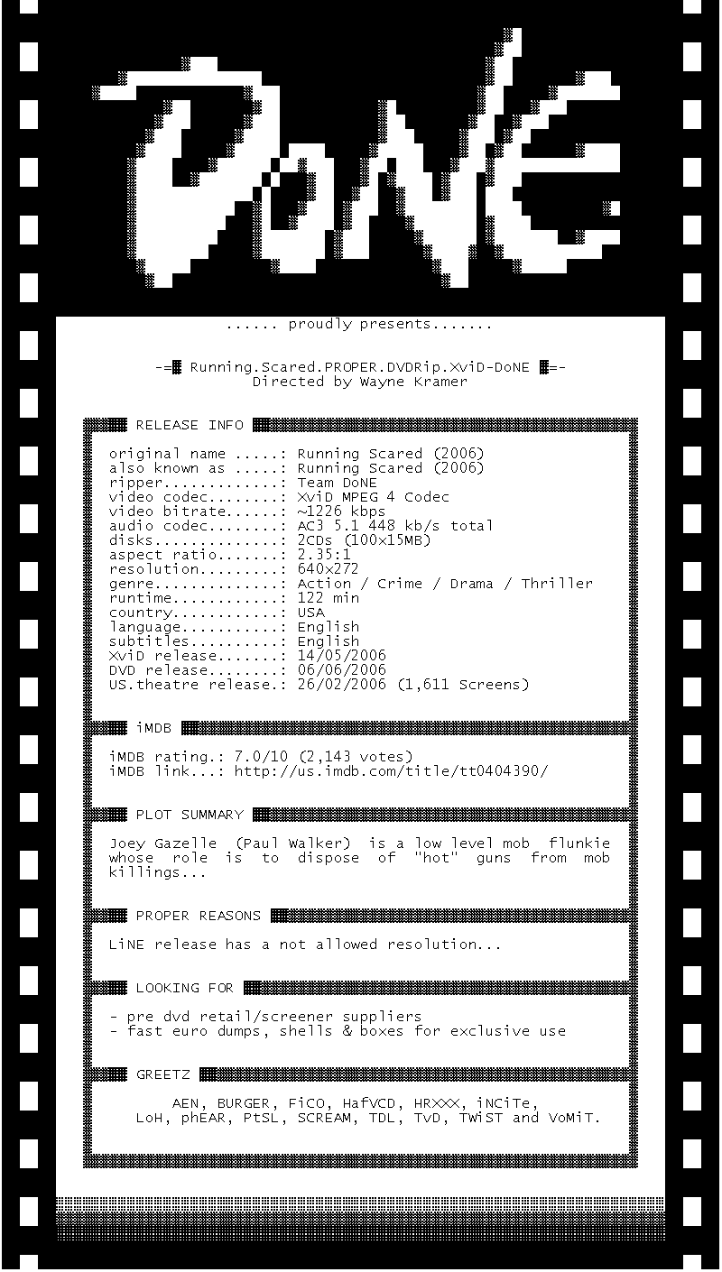Release Name : Running.Scared.2006.PROPER.DVDRip.XviD-DoNE