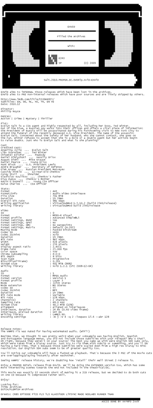 Release Name : Salt.2010.PROPER.DC.DVDRip.XviD-EXViD