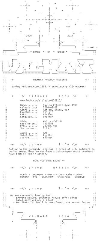 Release Name : Saving.Private.Ryan.1998.iNTERNAL.BDRip.x264-WaLMaRT